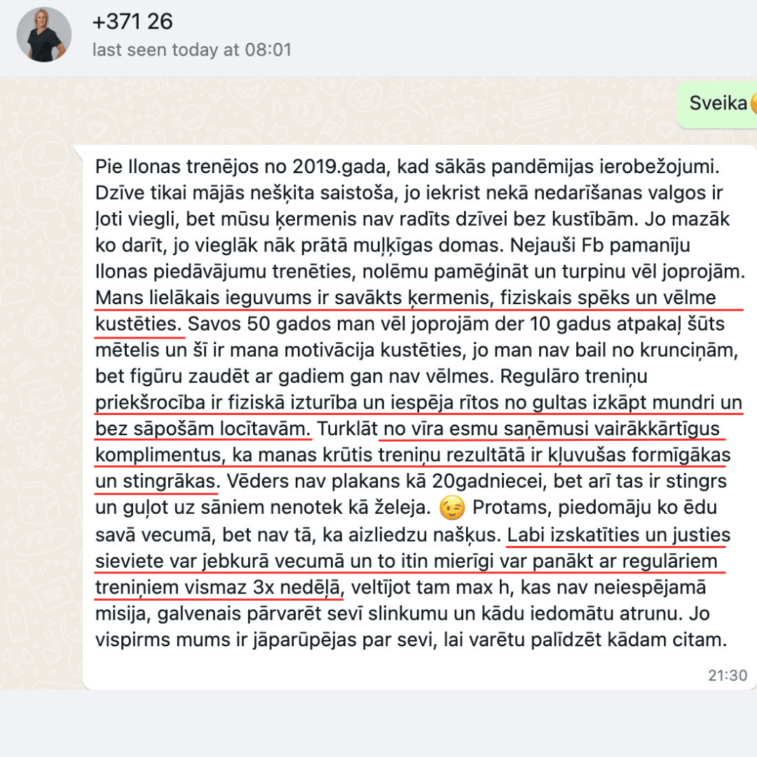 Bieži vien šī vilšanās nav treniņos vai diētās, bet gan sevī. Tā ir sajūta, kas sadragā mūsu pašapziņu un liek mums justies, ka neesam pietiekami labas. Es neciešu šo sajūtu! Nevienai sievietei tā nevajadzētu justies un es esmu to izvirzījusi par sava darba galveno mērķi.